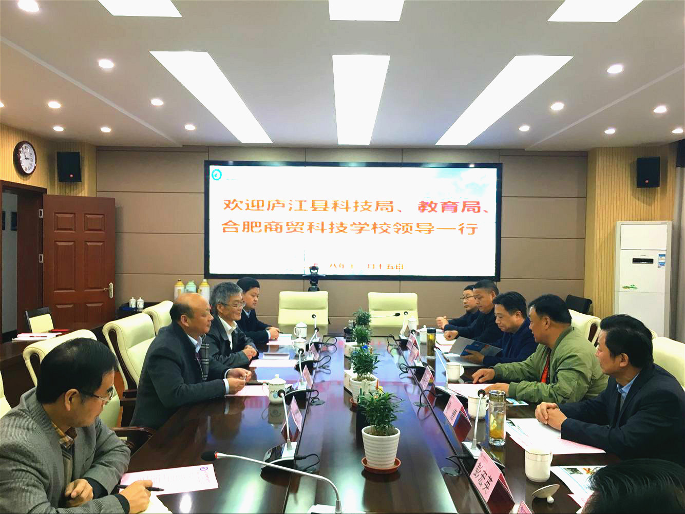 11月15日,庐江县科技局局长郭新生、庐江县教育局孙溥、合肥商贸科技学校校长夏友稳等一行来我校继续商洽联合办学事宜,副校长周晓隆、科技处处长朱道林、继续教育学院院长何世峰、教务处副处长胥振国出席此次会议。会议由朱道林主持。