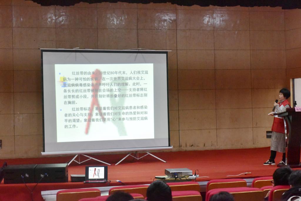 为让青春期的学生树立正确的恋爱观、珍惜关爱生命,提高防范艾滋病意识,普及艾滋病的有关知识,2018年11月21日,校医院邀请我校附属医院感染科陶莹莹老师主讲,在大学生活动中心为我校部分新生和部分教职员工举行艾滋病防控知识宣传教育讲座。