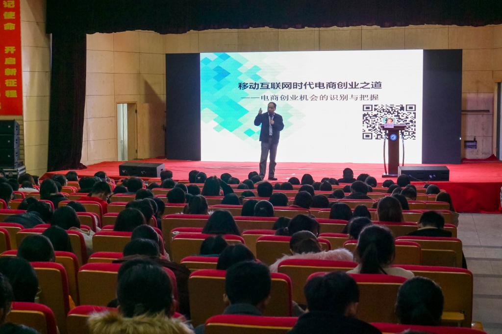 贾少华以《移动互联网时代电商创业之道——电商创业机会的识别与把握》为题,围绕着市场演变和互联网的发展,客观介绍了电商发展的大环境,开展电商创业的可行性,用大学生们通过电商创业成功的案例鼓励我校学生要学会利用互联网,提高创业意识,提升创业能力,积极参与创业实践,在做中学。在互动环节,贾少华针对我校学生不同的专业特点,给出不同的建议,为同学们答疑解惑。校党委胡其云副书记做了总结,他鼓励同学们对待创业一要敢想,相信自己;二要敢做,从小做起;三要振奋起来,斗志昂扬。