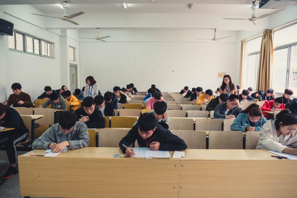 此次考试分上下午两场进行。考场里秩序井然,考生们认真答题,监考老师和巡考人员也一丝不苟地坚守在各自的工作岗位,考场外也可以到处看到等待中家长的身影。