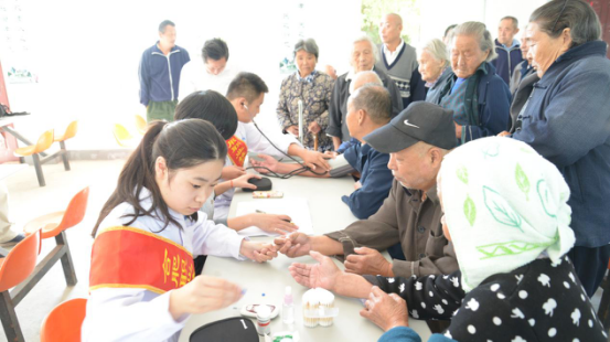 在活动中,我院志愿者们细致地为老人们测量血压、血糖,认真填写他们的健康档案,嘱咐他们健康饮食,多做运动。面对多次来过的志愿者们,老人们非常高兴。
