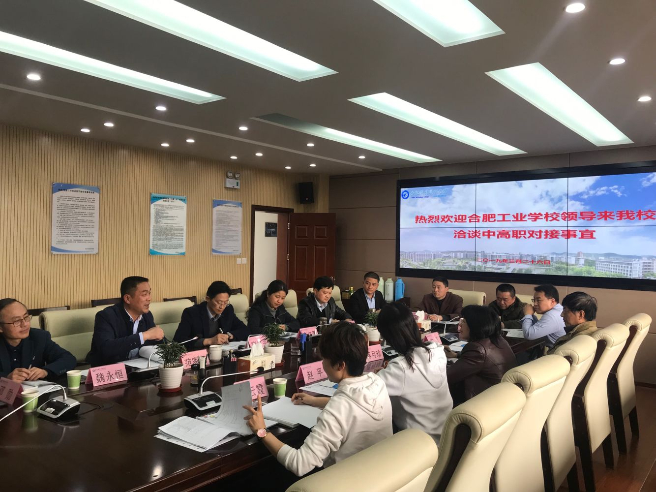 3月26日下午,合肥工业学校教务处处长蒋月珍、招就办副主任赵平、建工学部部长方波、副部长董云霞及相关专业课教师一行13人来我校就“3+2”中高职衔接培养事宜进行洽谈。我校建筑工程学院党总支书记李红雨、院长范家茂、副院长魏永恒及教务处副处长窦红平、胥振国等参加会议。双方就中高职“3+2”人才培养、合作办学及2016级学生转段工作开展了深入交流。