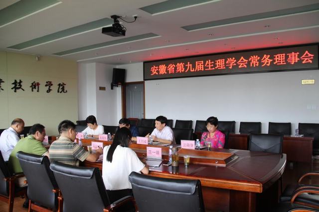 9月17日,安徽省第九届生理学会常务理事会在我院行政楼三楼会议室召开。来自安徽医科大学、安徽中医药大学、皖南医学院等高校的8位生理学专家出席会议,第九届生理学会理事长、安徽医科大学王烈成教授主持会议,我院副院长、第九届生理学会副理事长周晓隆参加了本次会议。