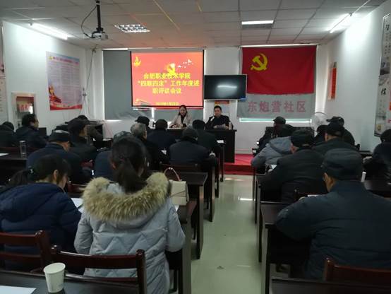为了深入推进“四联四定”工作和在职党员到社区报到工作,促进我校与社区共建共联,2018年我校以服务社区、服务群众为基础,在“四联四定”共建单位开展了形式多样的活动。1月23日,我校赴共建单位巢湖市东炮营社区召开“四联四定”工作年度述职评议会,参会党员、群众对我校“四联四定”工作进行了民主评议。