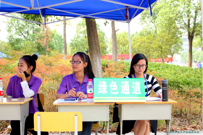 阳光温婉地涂染在每一枚落叶上,校园里彩色的志愿者服装成为大家眼里最靓丽的色彩。