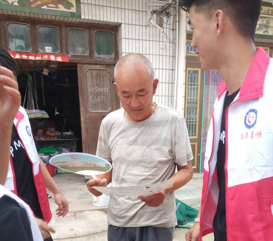 在集中理论讲座和现场问卷调查之后,宣讲团成员在当地村委委员的积极引导下,分组有序的开展理论宣传,既有政策法规的普及,也有垃圾分类新时尚的解说。他们奔赴大街小巷,顶着酷暑,相互配合、相互协作,活动开展的井然有序。