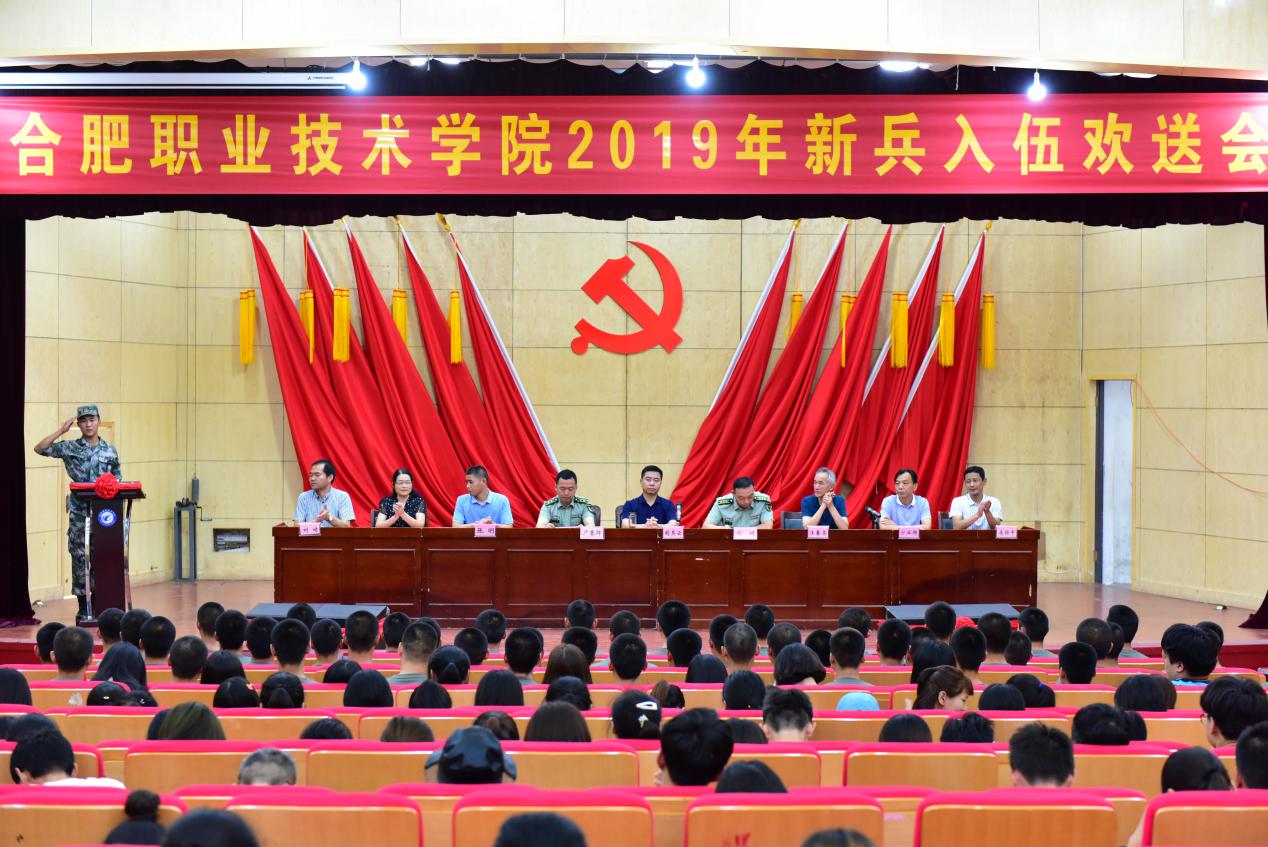 在雄壮的国歌声中,合肥888集团学院2019年新兵入伍欢送大会正式开始。新兵们精神抖擞,整装待发。据了解,今年我校采取“深入宣传、广泛发动”的方式,深入发动双优合职学子积极应征入伍,全校共200余名同学报名,经初筛、体格检查、政治审查以及新兵役前训练,最终78名合职学子被批准入伍。新兵文化素质、新兵兵员为巢湖市历年最优。从9月10日起,他们将分批奔赴军营,兵种涵盖陆军、空军和武警部队等。