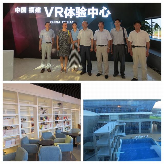 23日下午,我院代表团一行赴福州参观了国家规划布局的重点软件企业、国家文化产业示范基地、国家文化出口重点企业福建网龙网络公司,受到史魏总经理和汪金龙经理的热情接待,并与网龙网络公司相关部门负责人就校企合作进行深入交流与探讨,并考察了“中国福建VR体验中心”、员工工作区、休闲娱乐区和生活区等区域。我院代表团成员戴上一副特制眼镜,“走进”一个360度无死角的虚拟世界,有一种“身临其境”的感觉。
