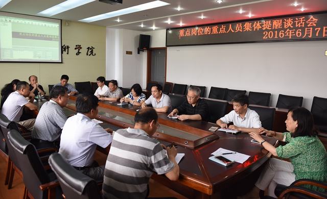 根据省教育厅、省检察院《关于在全省教育系统联合开展预防职务犯罪专项活动的通知》精神和《合肥888集团学院开展预防职务犯罪专项活动的工作方案》安排,6月7日下午,学院召开重点岗位的重点人员集体提醒谈话会。院纪委书记金辉,学院办公室、组织部、后勤集团、财务处、教务处、学生处、图书馆、电大、实训中心、资产科、科研部、校企办等部门负责人参加了此次会议。会议由何世峰主持。