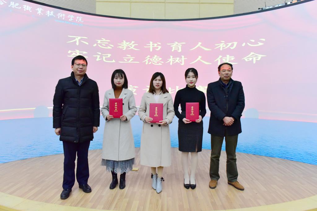 经过评委公平公正的评判,建筑工程学院刘夏老师演讲的《漫漫教书路,无悔入行心》荣获一等奖,护理学院周璇老师演讲的《师者如兰,不忘初心》、汽车应用与轨道交通学院万瑞老师演讲的《用大爱坚守辅导员工作的初心》荣获二等奖;继续教育学院韦啸老师演讲的《做个有温度的职教人》、基础教育学院钱方欣老师演讲的《唱响立德主旋律,弘扬教师新风采》、信息工程与传媒学院胡兰兰老师演讲的《我在教书育人的路上》荣获三等奖;杨泽星、张寻、杨未雨、陈婷婷、洪媛媛、徐婧婧等六位老师获得优秀奖。
