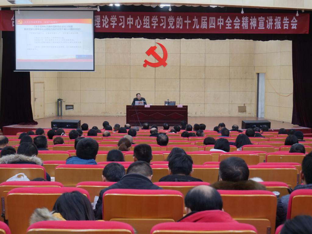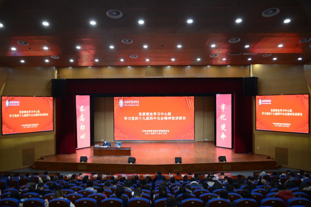 为深入学习贯彻党的十九届四中全会精神,推动“不忘初心、牢记使命”主题教育走深走实,12月18日,我校在鼓山校区和汇心湖校区同时举办党的十九届四中全会精神宣讲报告会。中共安徽省委党校(安徽行政学院)江观伙教授、中共合肥市委讲师团张步根教授受邀来校作宣讲。学校全体教职工,校学生会成员、各学院学生代表参加此次报告会。