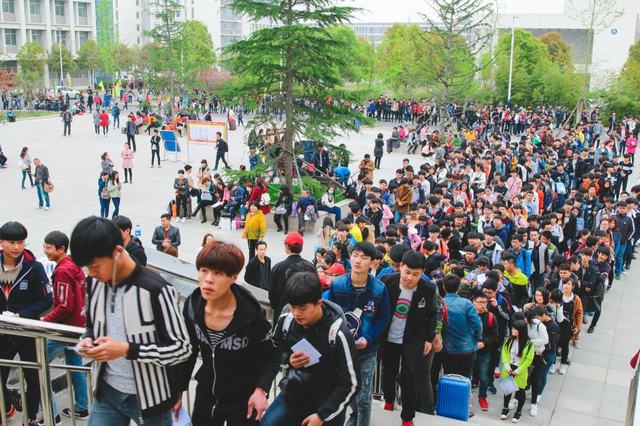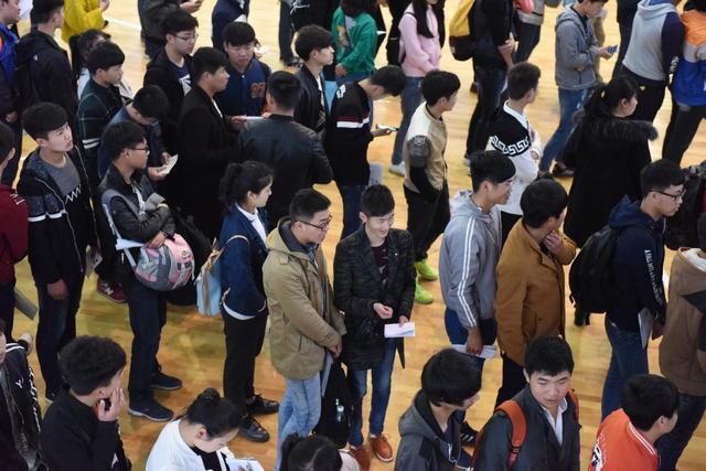 排队时,有的考生在与新认识的朋友小声交流,有的则不时关注着队伍的前方……等待也是一次人生的修行!