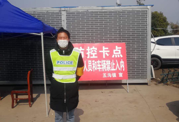 章晶晶同学在家乡疫情防控检查站值守(左二)