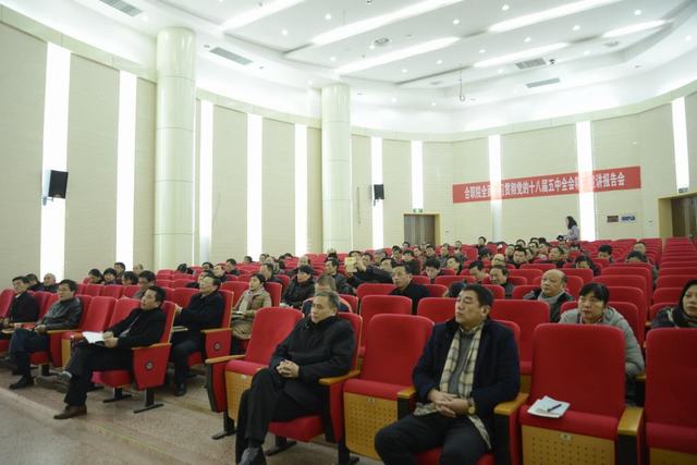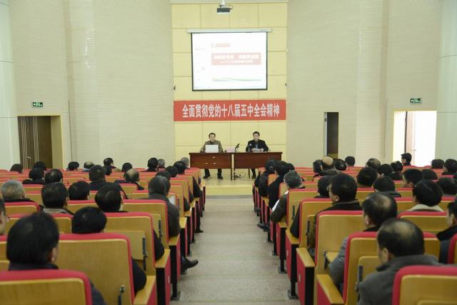 为深入学习贯彻党的十八届五中全会精神,落实好省委教育工委下发的《关于认真学习宣传贯彻党的十八届五中全会精神的通知》(皖教工委[2015]56号)提出的要求,12月23日下午,我院在图书馆二楼报告厅召开党委中心组专题学习扩大会,邀请合肥市行政学院王永龙教授作了题为“决战的号角,决胜的法宝——十三五规划建议解读”的主题报告。院党委中心组成员和副科级以上干部参加了此次会议,会议由院党委副书记胡其云主持。