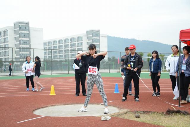 参加铅球比赛的选手互相竞争,成绩越投越远!别看我们是女子,我们也是鼓山脚下的英雄!