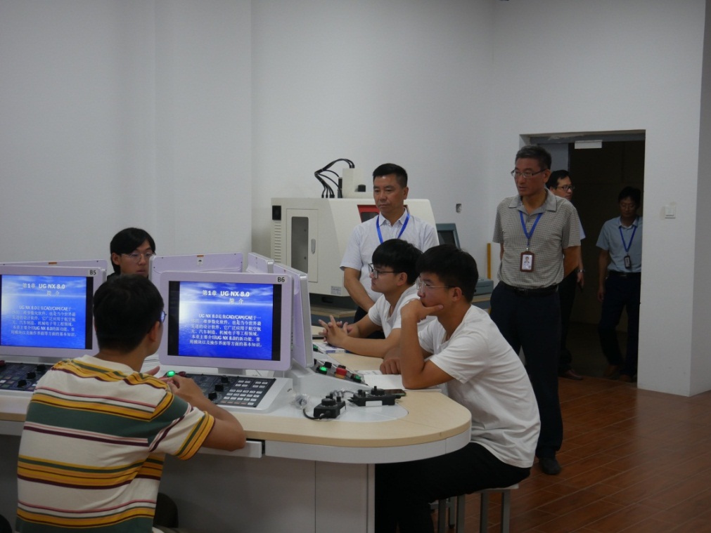 校领导走访了教学楼、实训室、机房、多媒体教室等场地,了解各设备的安排、使用及学校整体教学环境的运行情况。
