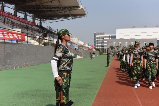 |   飒爽英姿五尺枪,曙光初照演兵场。中华儿女多奇志,不爱红装爱武装。          |