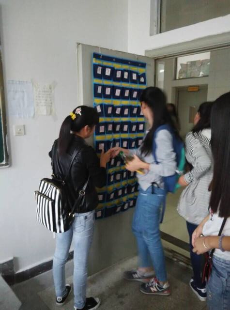 刘靓老师今年担任15级会计7班的班主任,为了让新生在入学之初就养成良好的行为习惯,促进优良学风的建设,她决定从杜绝学生上课玩手机抓起。学生报到以后,她就倡议同学们上课杜绝手机,拒绝做低头族。为了落实倡议,她在网上买回一个手机收纳袋,并在班级做出规定:每位同学上课、晚自习时必须将手机放入收纳袋中,并以此作为出勤的依据。每次上课、晚自习之前班长就把手机收纳袋挂在教室的门上,每位学生把手机放在自己专属编号收纳袋中,班长通过收纳袋手机收集情况就可以清楚地了解同学的出勤状况,并以此为依据考勤。这一举措既保证了学生的上课出勤率,也杜绝了学生上课玩手机的现象。