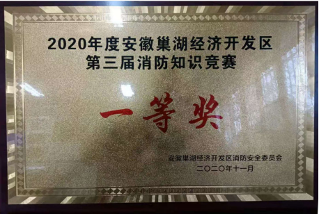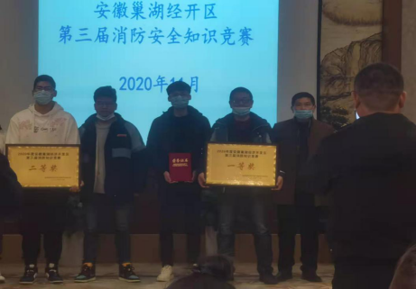 我校微型消防站队员蔡登旭、陈子强、陈宏生在保卫处治安科科长陈玉林的带领下参加了“2020年度安徽巢湖经开区第三届消防安全知识竞赛”。知识竞赛分为三部分——必答题、抢答题、风险题。我校选手凭着对消防安全知识的充分理解和丰富的知识储备,认真作答、快速抢答、沉着应答,最终以总分270分的优异成绩取得本次竞赛的第一名,领先第二名60分。