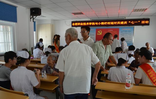 为进一步贯彻落实《中共合肥市委办公厅关于开展市直单位与城乡基层“四联四定”工作的实施意见》(合办〔2014〕11号)文件的精神,在今年党的生日7月1日下午,院党委副书记胡其云带领组织部、团委、医务所、医学分院等部门负责人和部分学生志愿者赴中悍镇小联圩村开展慰问困难老党员、志愿服务活动和文艺演出等活动。
