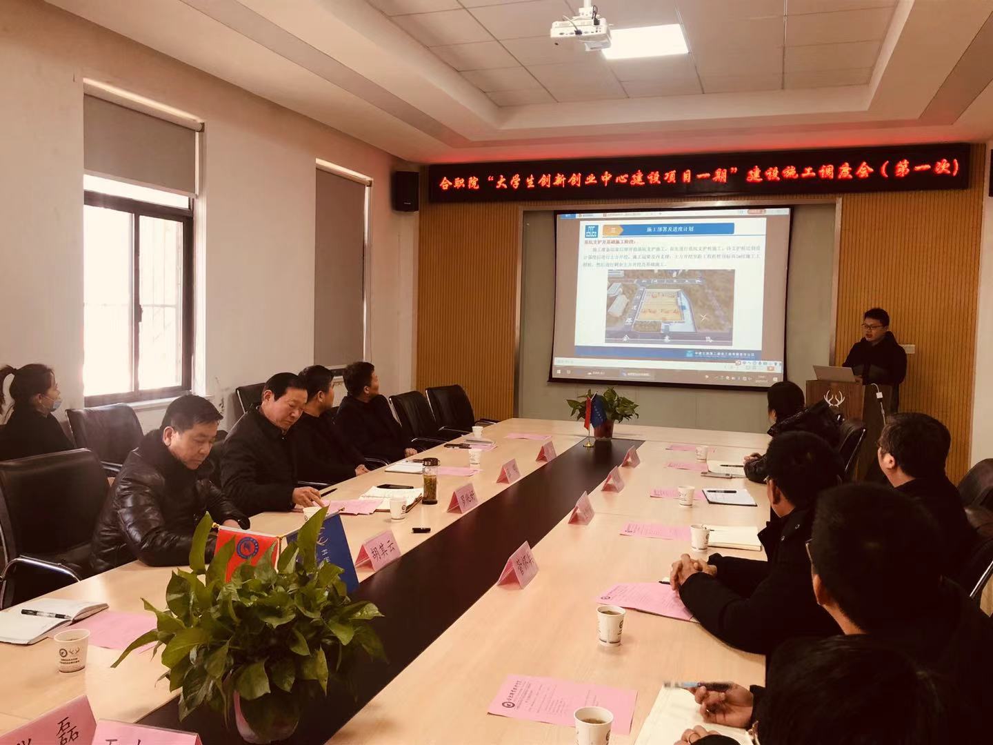 1月7日下午,我校在金寨路双创园A座一楼会议室召开了“大学生创新创业中心建设项目一期”建设施工第一次调度会。校党委书记罗兆好、市重点局公益性项目建设分局局长张明、校纪委书记陶宁、项目指挥部联合工作组成员以及项目建设单位、设计单位、监理单位负责同志参加了会议。会议由党委副书记胡其云同志主持,调度会就项目开工前有关问题进行调度、筹划和做出相关要求。