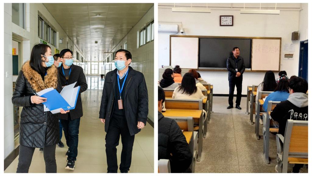 3月8日上午,在我校2020-2021学年第二学期第一节课开课之际,校领导班子全体成员带领教务处、教育教学督导评价中心负责人等,分别在汇心湖校区和鼓山校区开展教学首日巡视。校领导带队走访了教学楼、实训室、机房、语音室等教学场所,重点检查教师到岗、学生出勤、课堂教学秩序、教学保障工作等情况。