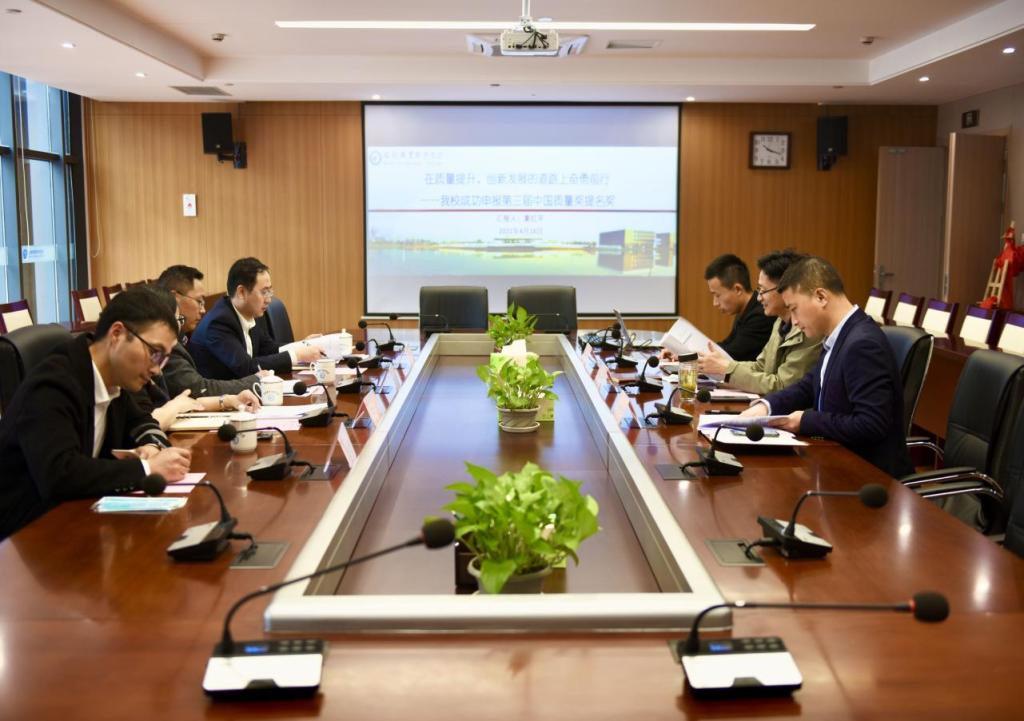 会上,双方观看学校宣传片,窦红平就我校获得第三届中国质量奖提名奖申报工作做简要汇报,新站高新区市场监督管理局对我校“十三五”期间发展成果表示充分肯定,双方并就中国质量奖申报工作进行交流讨论。