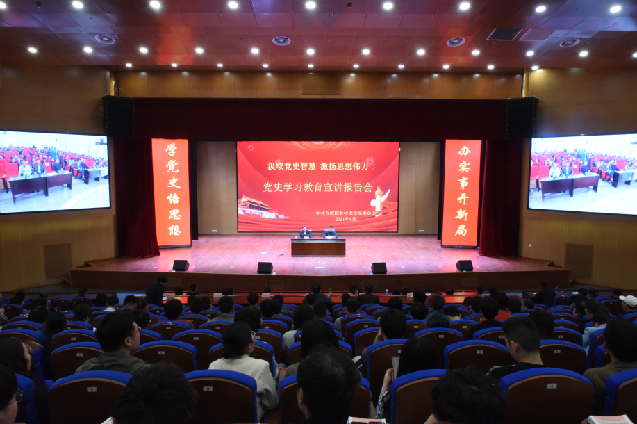 4月29日下午,为深入贯彻落实中央、省、市委的决策部署,推进全校党史学习教育工作走向深入,我校在汇心湖校区大学生活动中心和鼓山校区图书馆二楼报告厅召开党史学习教育宣讲报告会,邀请市委党史学习教育宣讲团成员、安徽大学马克思主义学院副院长李明教授作题为《汲取党史智慧 激扬思想伟力》的宣讲报告。学校领导班子成员、全体教职工及部分学生代表参加会议,会议由党委副书记胡其云主持。