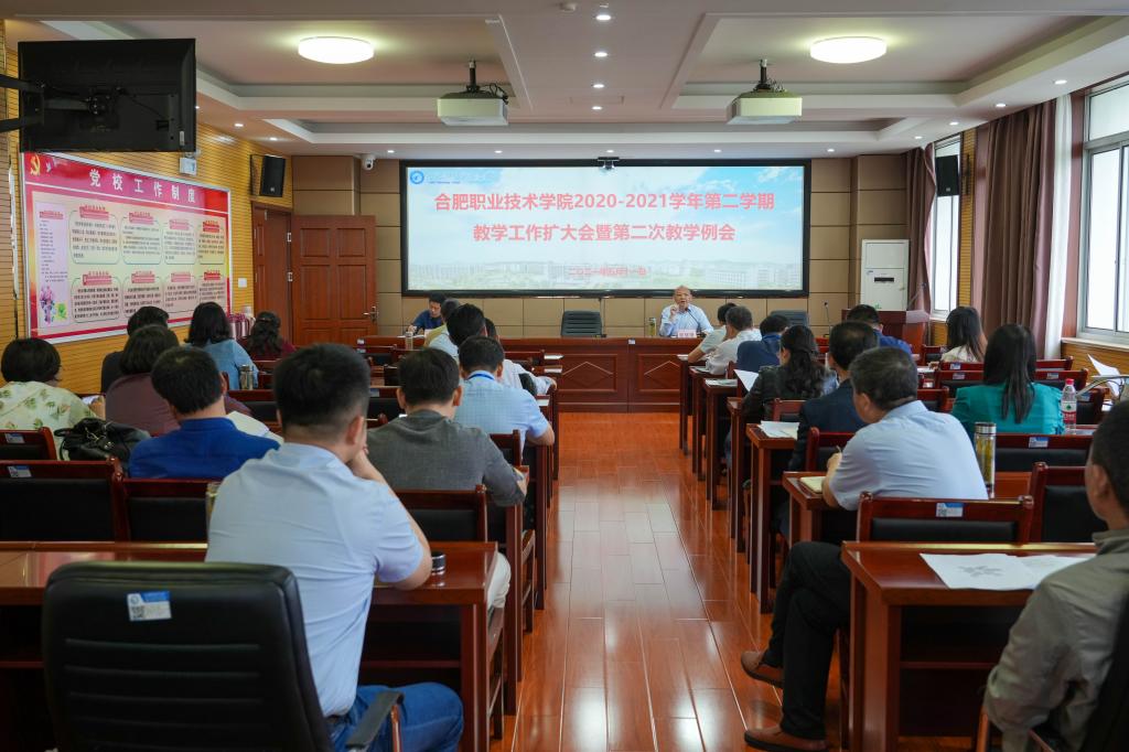 教务处副处长(主持工作)窦红平教授首先通报了本学期期中教学检查结果及2021年分类招生情况,其次,重点对提质培优项目建设情况、2021年秋招相关工作、新一轮专业人才培养方案修订工作、2021届毕业生毕业工作及2022届毕业生电子照片采集工作等进行安排布置。科技处处长胥振国教授就2021年我校职业教育活动周进行全面部署安排。现代教育技术中心主任黄永生全面解读了《安徽省高校信息化评价指标体系2.0(试行)》。