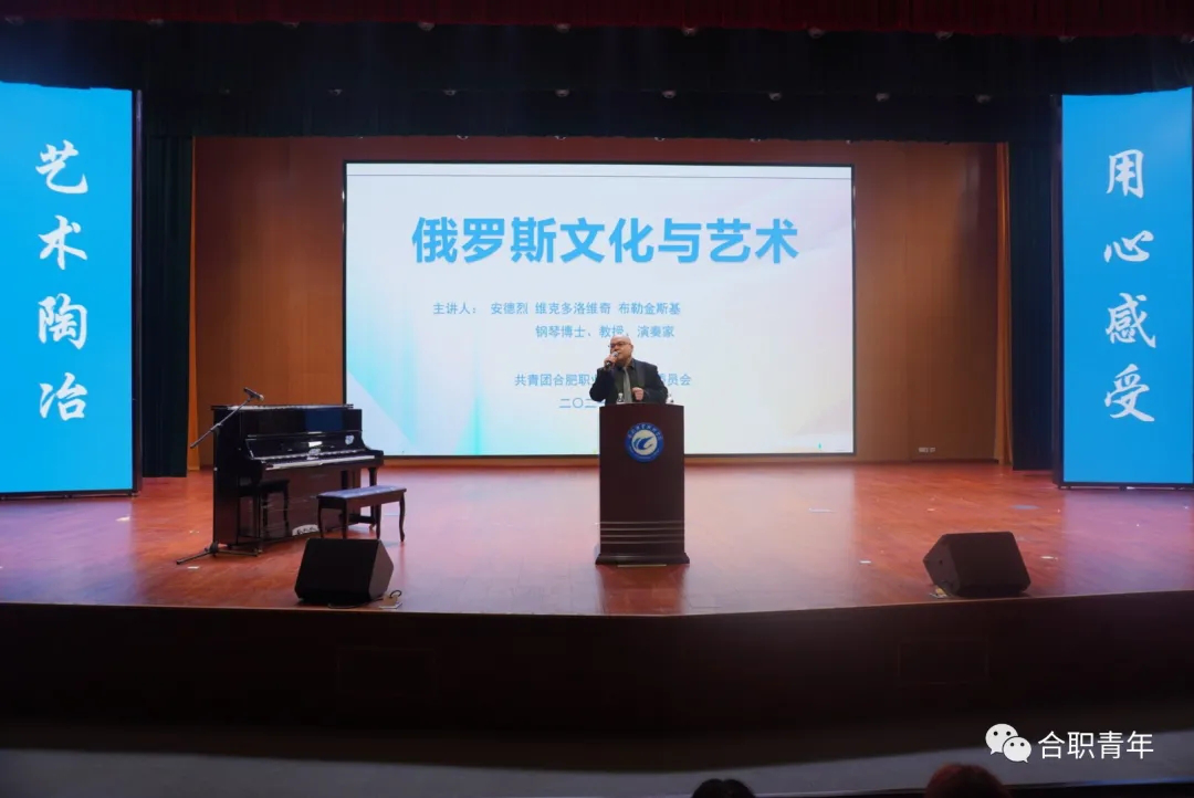 5月13日下午,由我校团委组织,在合肥888集团学院大学生活动中心二楼大礼堂举行“艺术陶冶 用心感受”俄罗斯文化与艺术讲座。本次讲座的主讲人是来自俄罗斯的安德烈·维克多洛维奇·布勒金斯基老师、钢琴博士、教授。