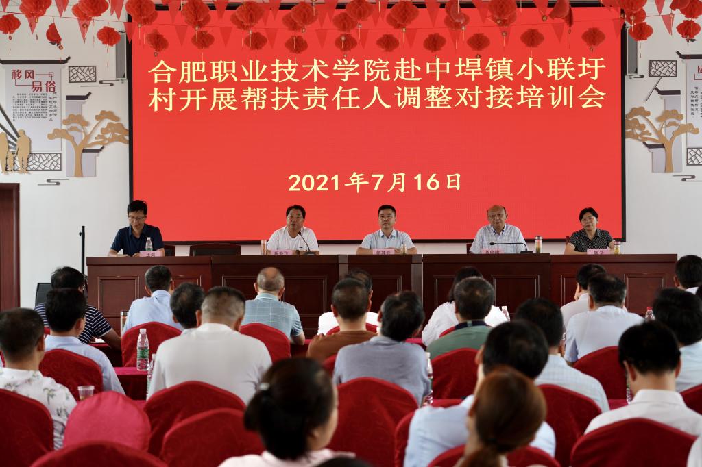 现场对接之后,学校党委在小联圩村村委会礼堂召开了帮扶责任人调整对接培训会,学校领导班子成员、小联圩村党总支书记祝业飞及我校新老帮扶干部参加了会议,会议由党委副书记胡其云主持。