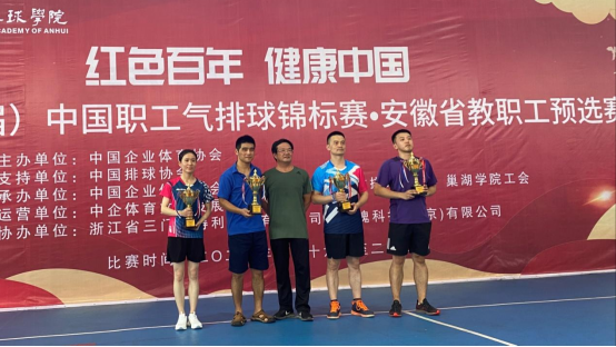 我校基础教育学院体育教研室8名教师代表学校参加此次青年混合组比赛。在两天的比赛中,我校教职工代表队分别战胜安徽大学、安徽建筑大学,以小组第一的成绩晋级八强。在晋级赛中惜败对手,最终获得第六名的好成绩。