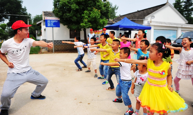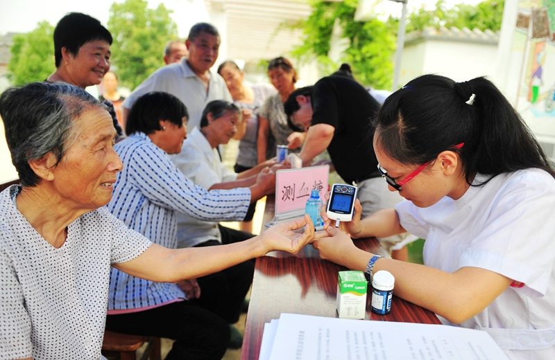 启动仪式之后,志愿者们分成三组。一组为村民们量血压测血型和血糖,耐心细致地为他们检查身体,宣传健康饮食和生活习惯。一组组织留守儿童做游戏,教他们唱歌、跳舞、打拳。现场充满着欢乐的笑声、掌声和欢呼声。一组帮助村民挑选我院志愿者们募集到的服装,带到现场的50件衣物全部被村民选走。