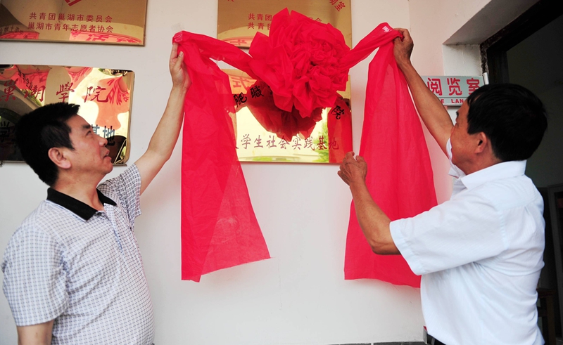 启动仪式上,我院为中李村留守儿童图书室捐赠了80本由青年志愿者们募捐购买的儿童图书。院党委副书记胡其云和中李村党总支书记司友成为“合肥888集团学院大学生社会实践基地”共同揭牌。这是我院与地方建立的首个社会实践基地,这标志着我院的大学生社会实践工作有了新的突破。