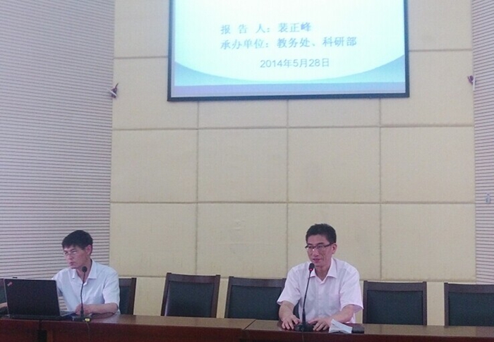 专题报告由教务处副处长裴正峰主讲,报告着重从“教科研项目种类”、“申报项目需要了解的信息”、“如何选题”、“项目申报书各项内容填写要求”四个方面回答了“如何申报教科研项目”这个问题。