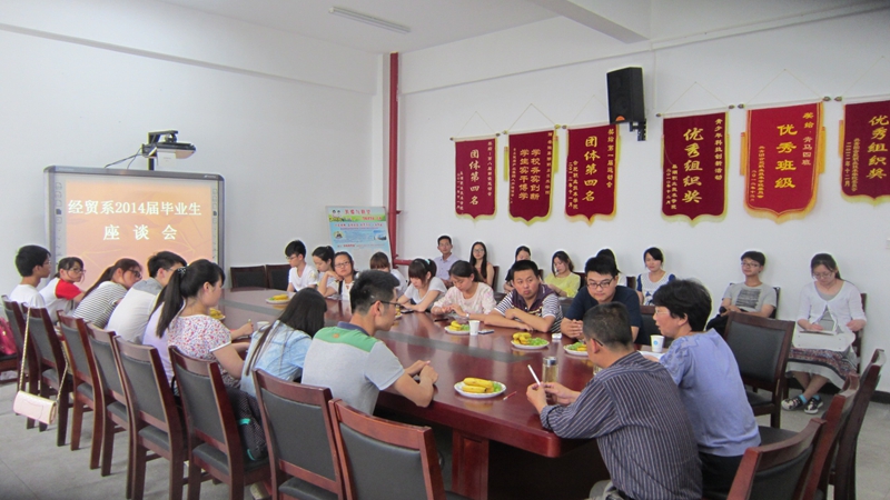 5月25日下午,经贸系举行了隆重热烈的2014届学生毕业典礼。院领导方志斌、胡其云、孙兴林、张广龙等亲临毕业典礼现场,方志斌院长在毕业典礼上代表学院做了深情的发言;毕业典礼结束后,院领导和学院相关部门负责人还和经贸系师生共同观看了经贸系欢送2014届毕业生文艺演出。这一切让广大毕业生切实感受到了学院对他们的重视和关怀。5月24日下午在经贸系会议室,举行了毕业生座谈会,参加座谈会的二十多位同学分别介绍了自己顶岗实习的情况,畅谈了在单位实习的感受,也为学院更好发展提了很多有益的建议。各个班级根据各自的情况也分别开展了不同形式的纪念活动,各辅导员通过不同方式与毕业生充分交流。这些活动增进了毕业生与母校师生间的感情,让毕业生带着美好的心情奔赴新的征程。
