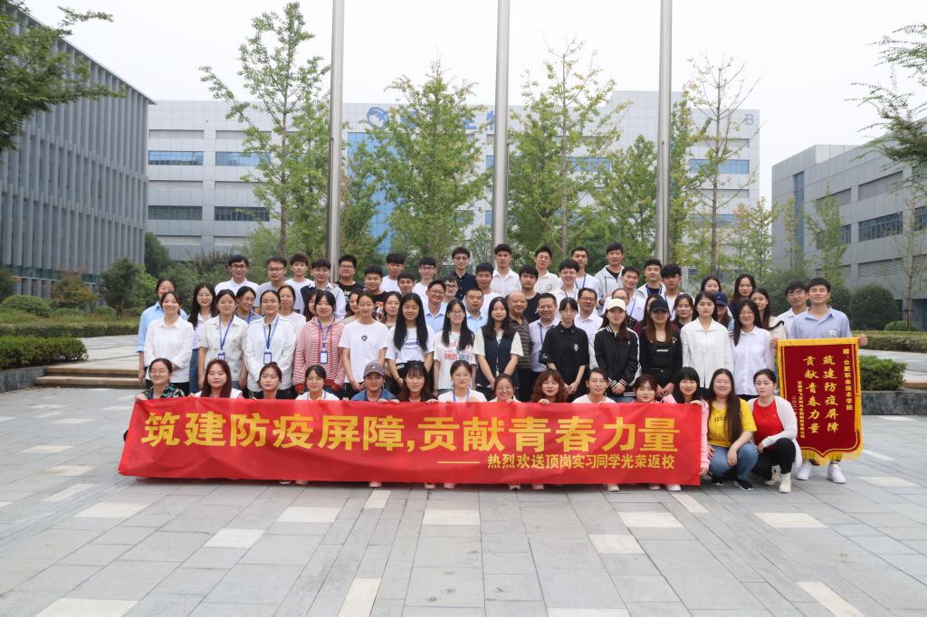 经过6个月的艰苦奋战,我校生物工程学院19药品生产技术专业两个班64名学生圆满完成了支援智飞龙科马生物医药有限公司应急生产任务。9月29日,校党委委员、副校长周晓隆教授率领教务处副处长(主持工作)窦红平教授、生物工程学院副院长(主持工作)刘修树教授等到龙科马迎接学生凯旋归来!