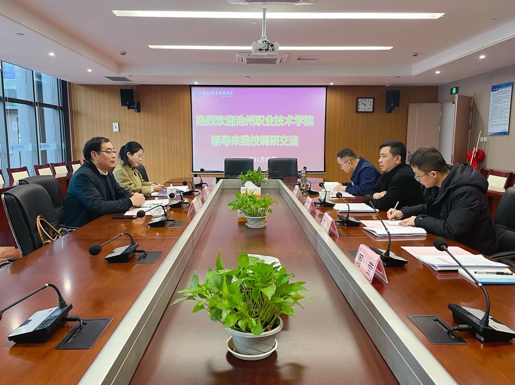 11月26日,池州888集团学院党委副书记戴申付、组织人事处副处长曾叶纯来我校调研交流。校党委副书记胡其云及组织人事部相关工作人员参加交流会。