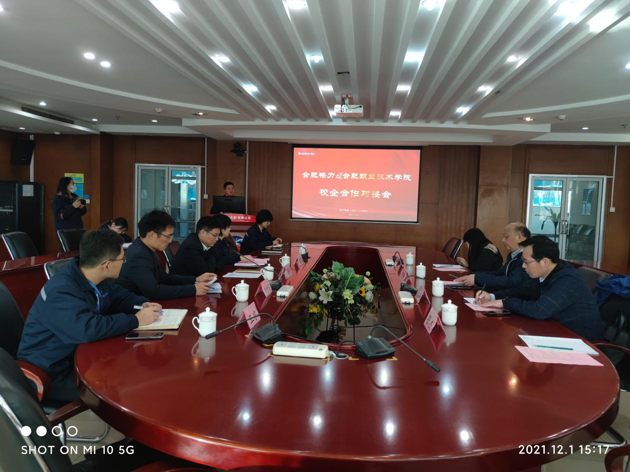 12月1日下午,应格力电器(合肥)有限公司的邀请,副校长周晓隆教授、机电工程学院副院长(主持工作)胡木林、机电工程学院副院长孙新梅教授等一行前往格力电器(合肥)有限公司进行校企合作调研。陪同调研的有格力电器(合肥)有限公司总经理助理张春生、总经办副主任姚文娟、商二厂副厂长刘世波、商二厂综合科科长王农、招聘培训科副主管左俊等。