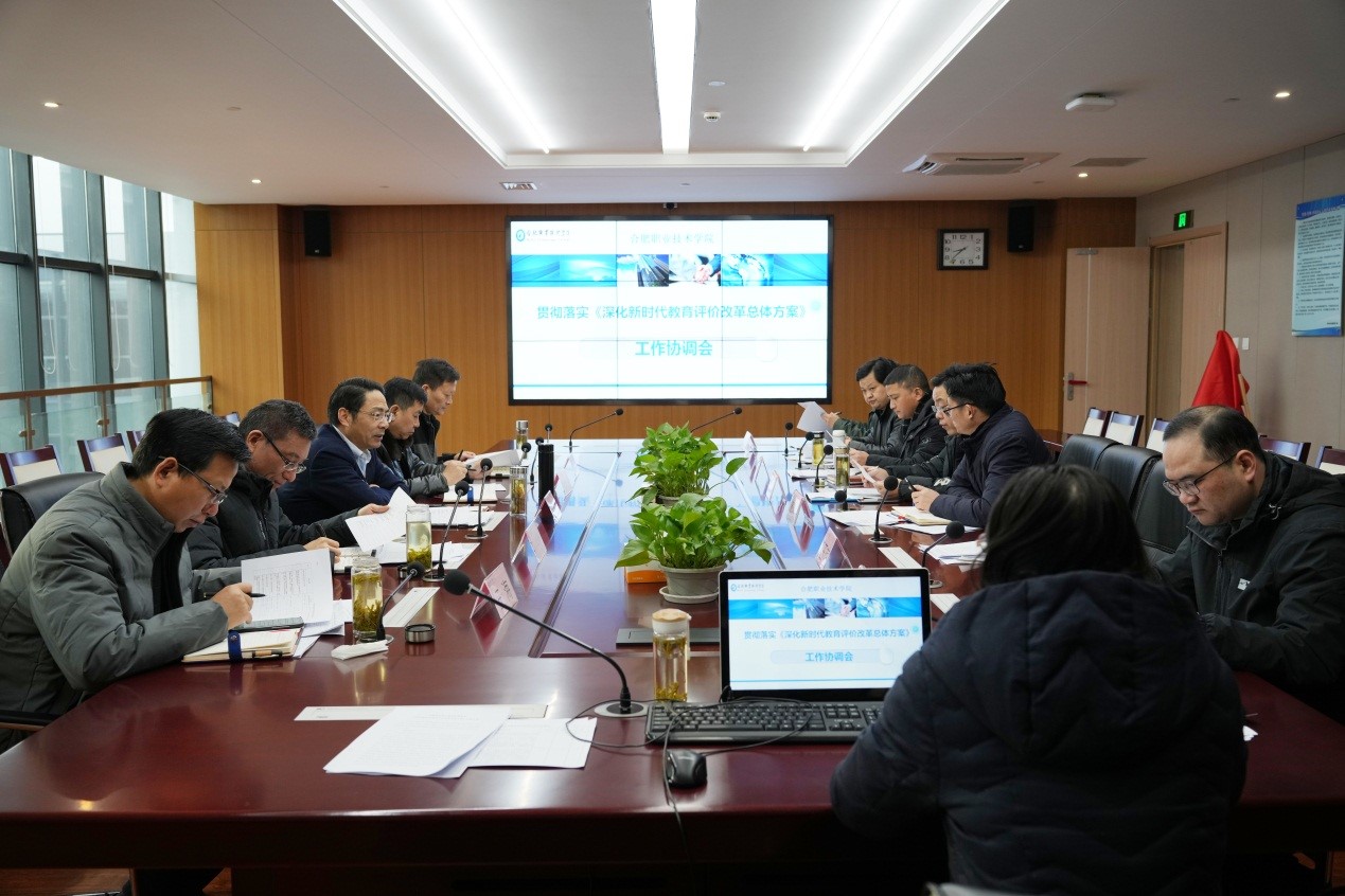 为进一步深入贯彻落实《深化新时代教育评价改革总体方案》,12月30日上午,我校在汇心湖校区图书馆627会议室召开贯彻落实《深化新时代教育评价改革总体方案》工作协调会。会议由学校党委书记王杰才主持,学校领导及相关主要职能部门领导参加了会议。
