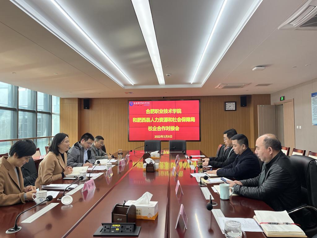 为深入实施“人才强市”战略,进一步优化发展环境,推进毕业生服务地方经济,促进高校毕业生等重点群体就业,3月8日上午,肥西县人才办主任武笑天、肥西县人社局副局长孟祥霞、肥西县公共就业人才服务管理中心主任王心龙及副主任金艳来我校开展毕业生实习就业与校企合作洽谈。会议由我校党委副书记胡其云主持,学生处、教务处、科技处等相关部门共同参会。