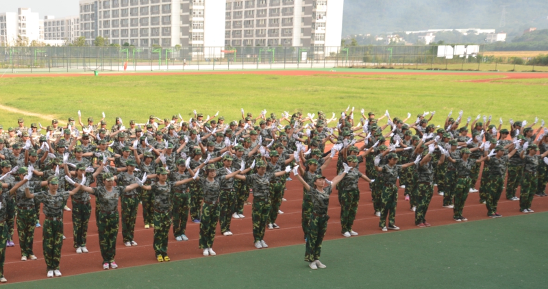军训成果演示由队列表演、拳术表演、手语表演、图形方队和大合唱等几部分组成。同学们充分展示了十来天的军训成果,表演高潮迭起,现场不时爆发出热烈的掌声。