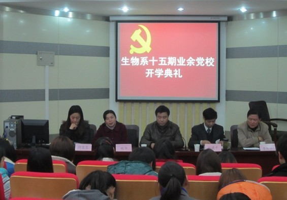 典礼在庄严的国歌声中开始。首先,生物系党总支书记魏华就生物系业余党校的开班情况,阐述了参加业余党校学习的目的和意义,希望同学们能够端正学习态度,明确学习目标,认真上好每一节党课。之后,生物系党总支组织委员贾佑华宣读业余党校学员守则和考勤制度。