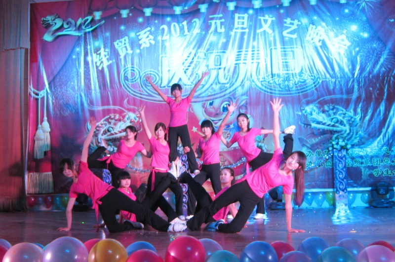 演出正式开始前,经贸系主任宋风长作新年致辞,为全体师生员工送上新年的祝福;接着由师生员工精心准备的十八个文艺节目轮番上演。整台晚会节目形式多样,内容丰富,歌曲、舞蹈、健美操、小品、相声等异彩纷呈;持续两个小时的演出是一场送给2011年的视听盛宴,也是一场迎接2012年到来的师生嘉年华,演员们用他们的真情和才艺诠释了人生的理想和追求,充分展现了经贸系师生的精神风貌。最后晚会在优美的歌声中圆满落幕。