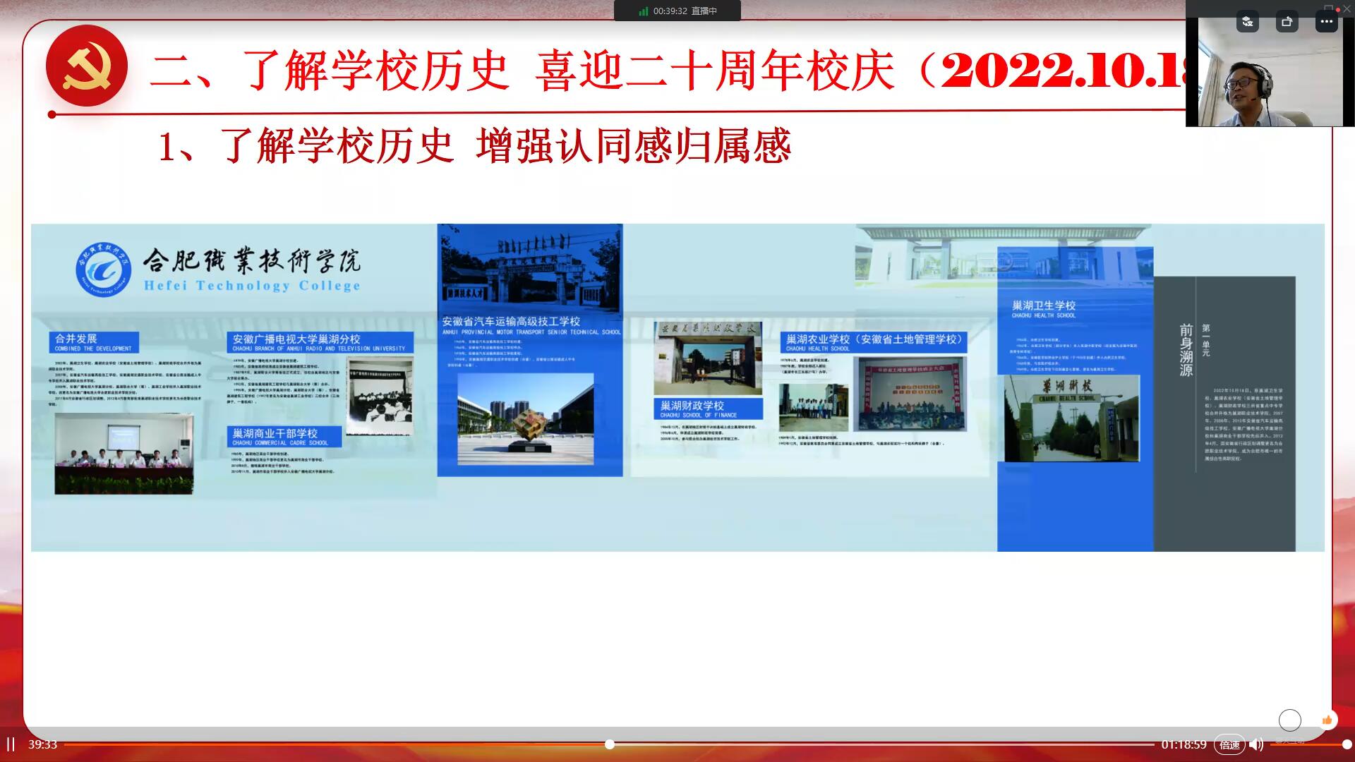 此次宣讲的主要内容有三个大方面:一是新时代青年“心怀国之大者”,学习《习近平谈治国理政》第四卷,掌握历史主动,迎接党的二十大胜利召开;二是“合职学子需了解校史校情”,增强认同感归属感,并传承合职文化凝聚合职力量,迎接20周年校庆;三是“合职学子该如何做好自己”,列举时代楷模黄文秀、戍边战士陈祥榕的鲜活案例及我校学子响应党和国家号召到西部和革命老区家乡工作的身边实例,引导新生既要爱党爱国爱民做个有志向有抱负的青年,又要德智体美劳全面发展,做个有理想有追求的学子。