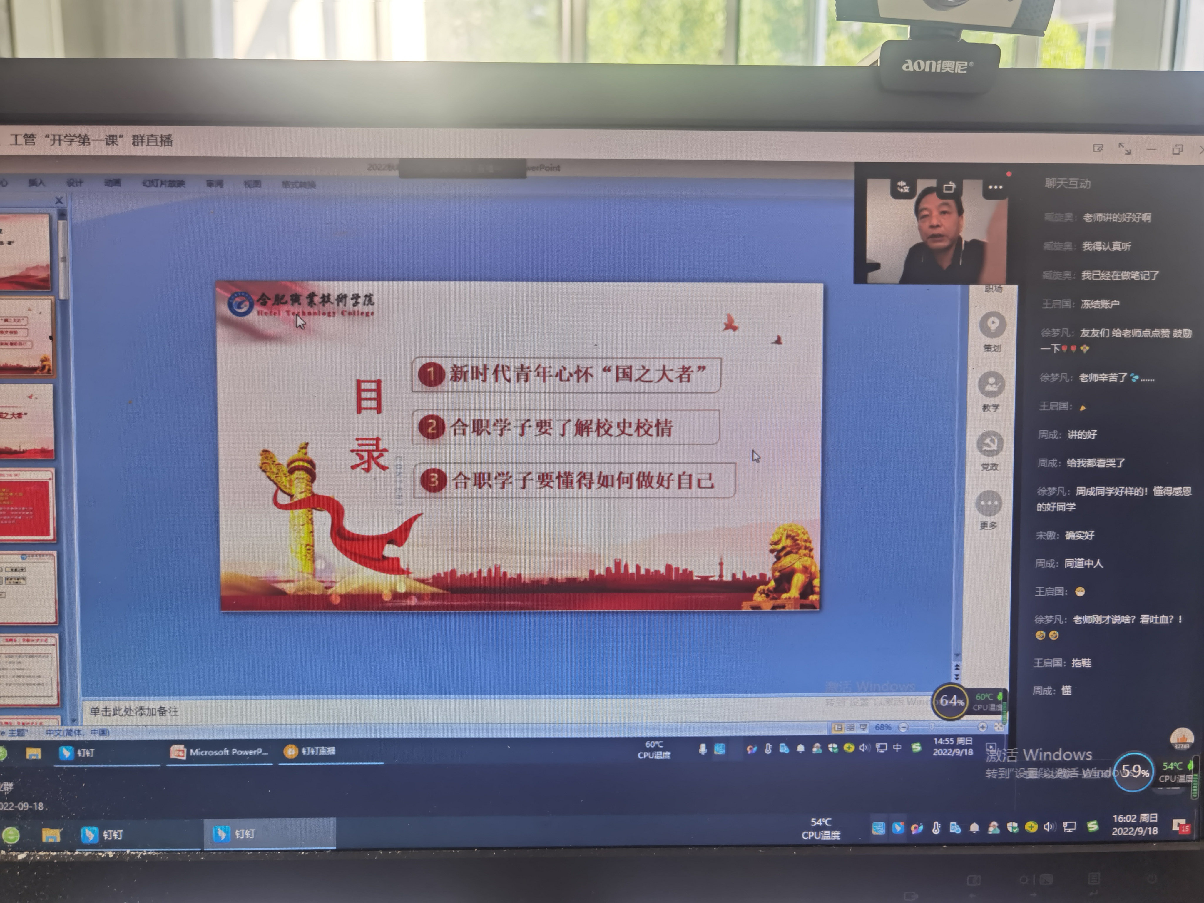 9月14日以来,我校22级新生开学第一课在钉钉等线上平台全面展开。此次宣讲以立德树人为根本任务,以迎接党的二十大胜利召开为主线,以20周年校庆为契机,结合疫情防控形势,教育引导青年学子爱党爱国,做好自己,以实际行动迎接党的二十大胜利召开。学校党委书记王杰才等领导班子成员、学校党口部门负责人、各二级学院党总支书记、马克思主义学院部分教师参加了此次授课。