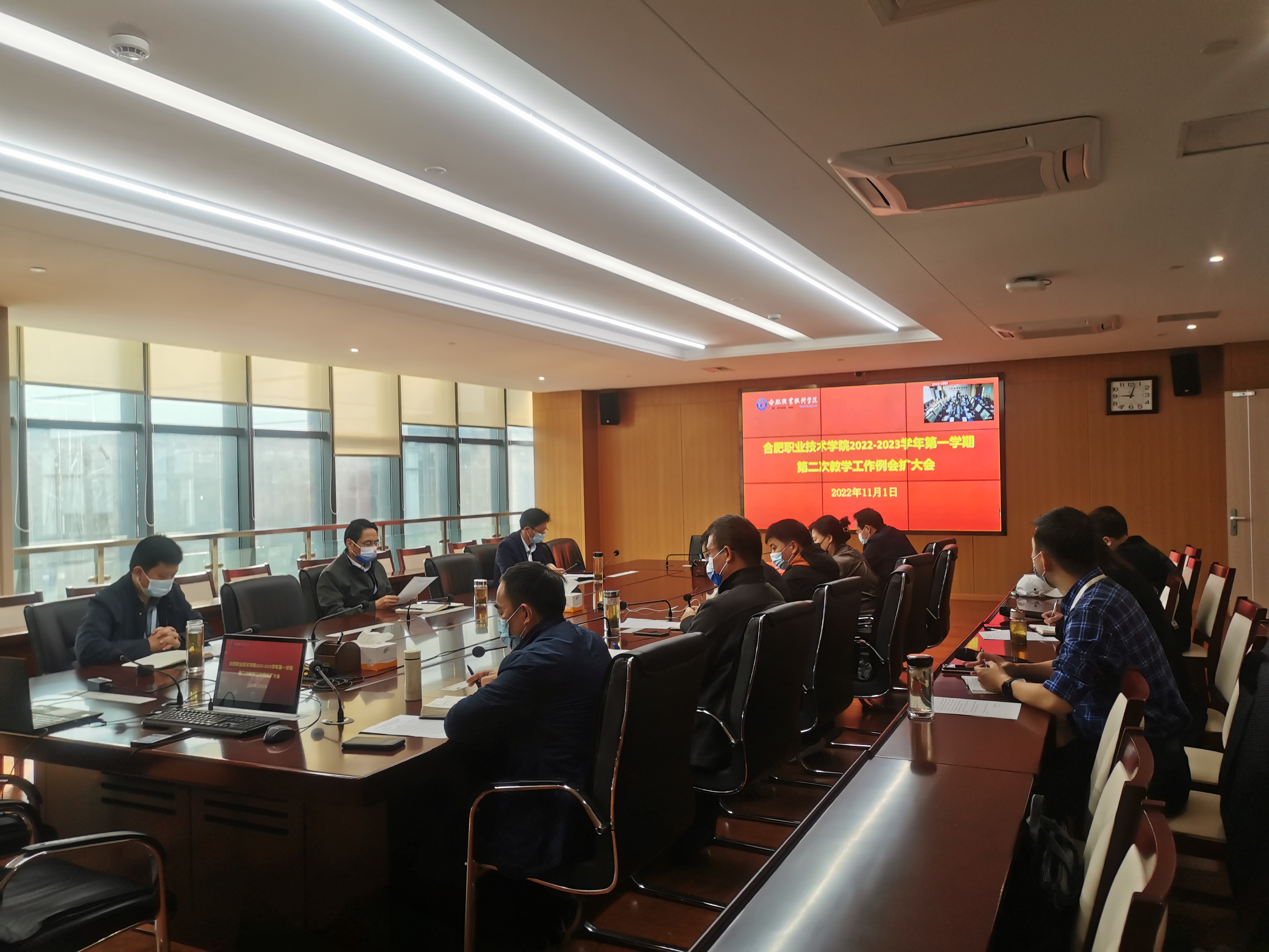 教务处副处长(主持工作)窦红平以“落实精细化管理、促进内涵建设、为治学优环境”为主题,从规范教学行为、强化教学管理、实施考教分离、推进教务管理平台应用等方面作工作汇报;科技处处长胥振国布置了2022年度校级教科研项目申报工作;图书馆馆长王玉蓉汇报了图书馆资源社会服务情况;现代教育技术中心主任黄永生通报教学信息化使用情况,并提出具体建议。