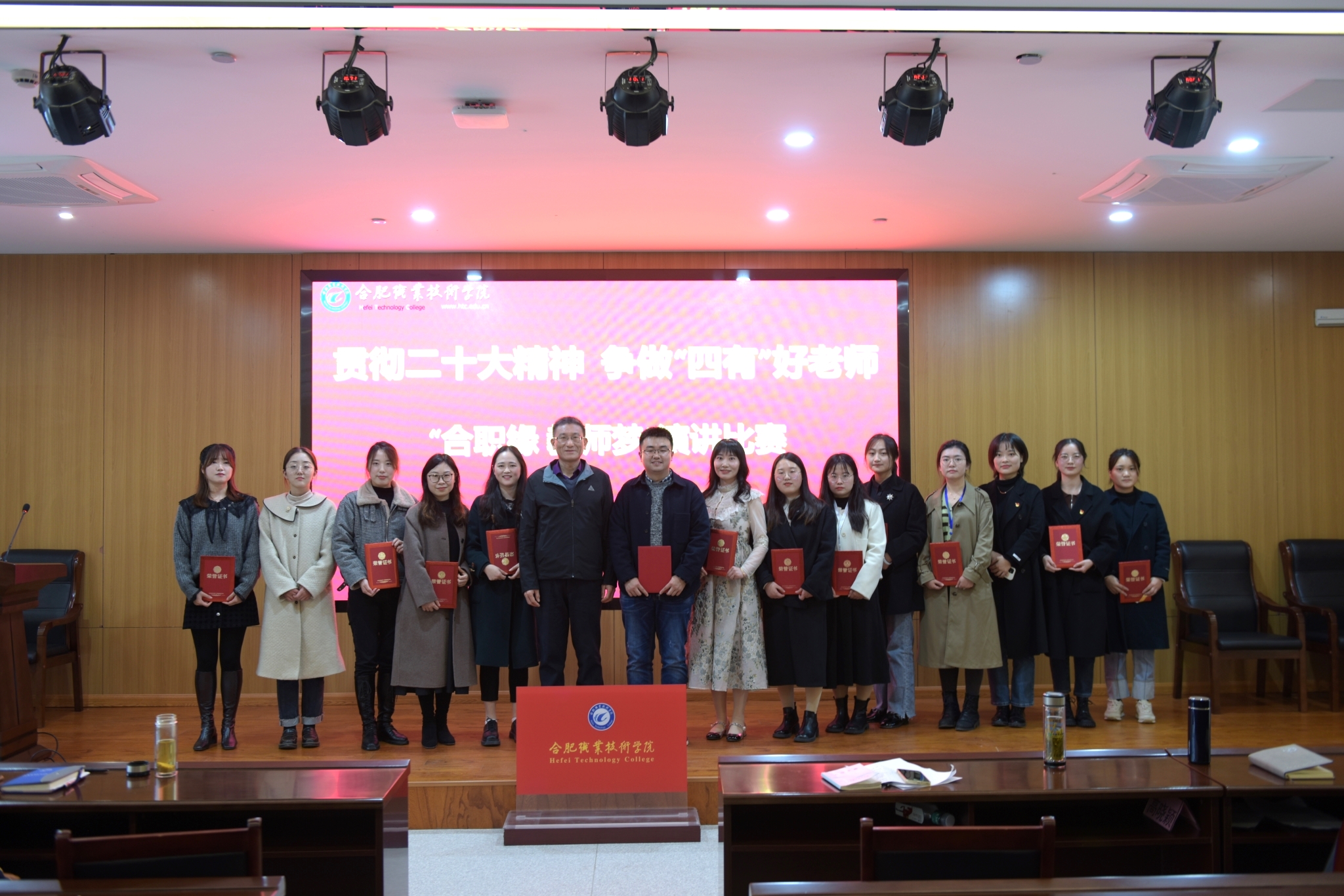 为贯彻党的二十大精神,抒发“合职师生心向党”的爱校、荣校情怀,11月23日,校工会在汇心湖校区图书馆一楼报告厅举办“合职缘 教师梦”演讲比赛决赛,来自全校各分工会的14位老师参加了比赛。