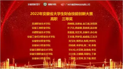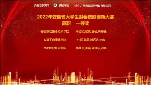 11月26日上午,由安徽省教育厅主办的“2022年安徽省大学生财会技能创新大赛” 圆满落下帷幕。我校经贸旅游学院选派两支队伍参加该项赛事高职组的比赛,分别取得了省一等奖和三等奖,实现了我校在该项赛事中连续四年蝉联一等奖的好成绩。
