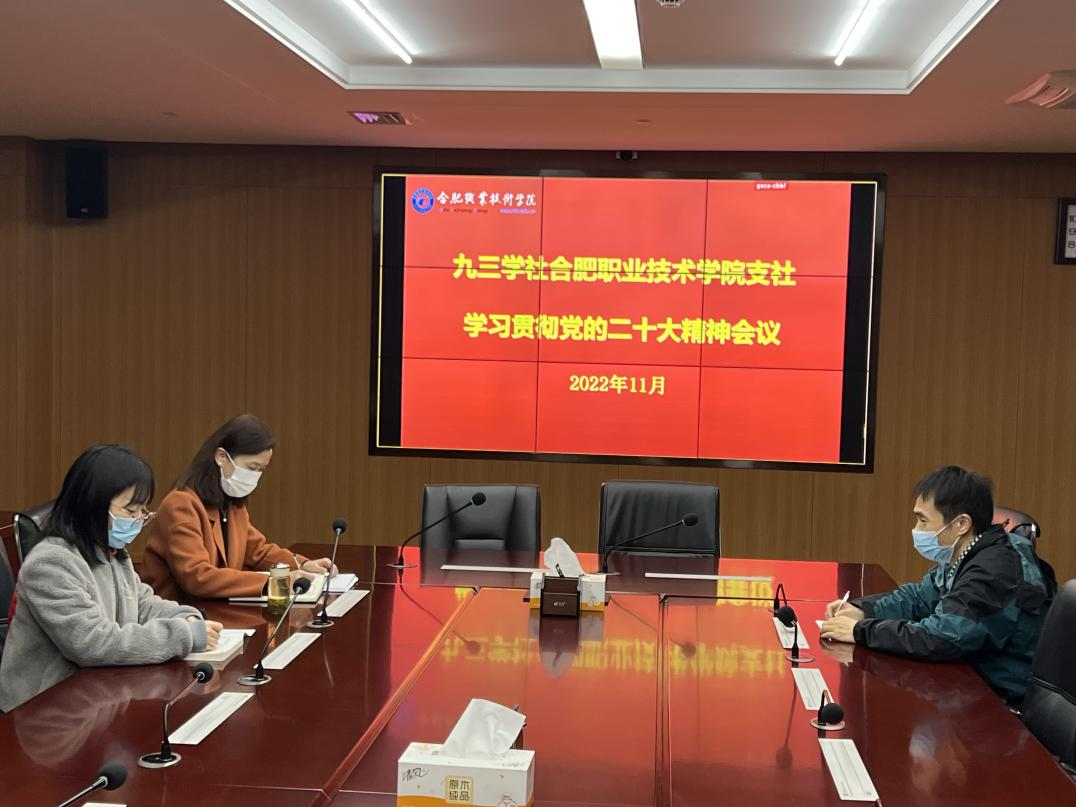 近日,九三学社合肥888集团学院支社组织召开学习宣传贯彻党的二十大精神会议,会议采用线下、线上联合方式同时进行,全体社员参加了会议。